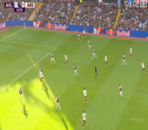 第42分钟,萨卡强突回传,本-怀特打门被没收