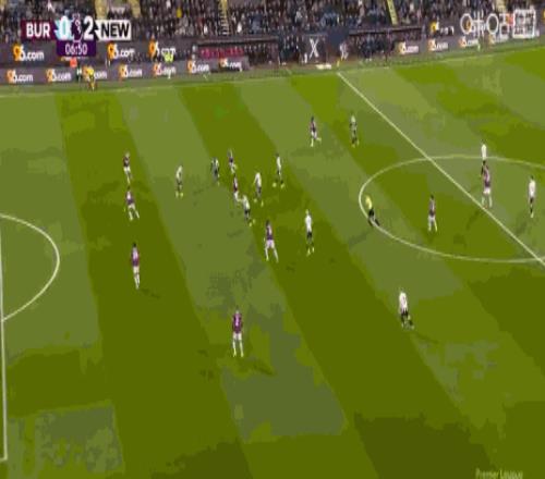 第90+2分钟,伯恩利后场失误,吉马良斯吊射破门,纽卡3-1