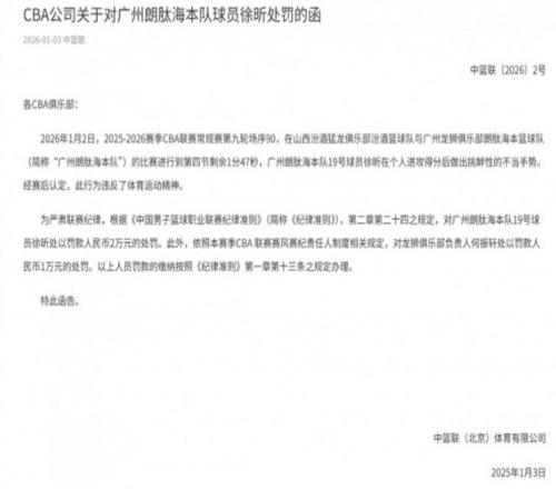 争议!CBA官方罚单:徐昕“割喉”庆祝罚2万林孝天同样动作未罚