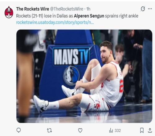 北京时间1月4日,火箭客场104-110惜败独行侠,火箭本赛季已经被独行侠双杀,更惨烈的是火箭又再一次输给西部倒数前三的弱旅。这场比赛火箭队的借口是阿尔佩伦-申京早早伤退+史蒂文-亚当斯伤停。
