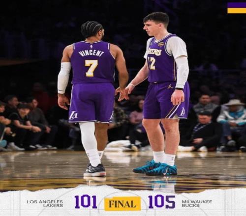 第四节决战,詹姆斯送出精妙背后助攻,带领湖人追至2分分差,还在啃老啊。詹姆斯生抢对手霸气上篮再中,末节个人独砍9分,湖人反超雄鹿。詹姆斯拼尽全力,直接倒地拼抢地板球,这个41岁老汉真是尽力了。东契奇关键时刻领到第6犯,送小波特上罚球线三次罚球,字母哥关键一防破坏詹姆斯进攻,雄鹿105-101有惊无险战胜湖人。